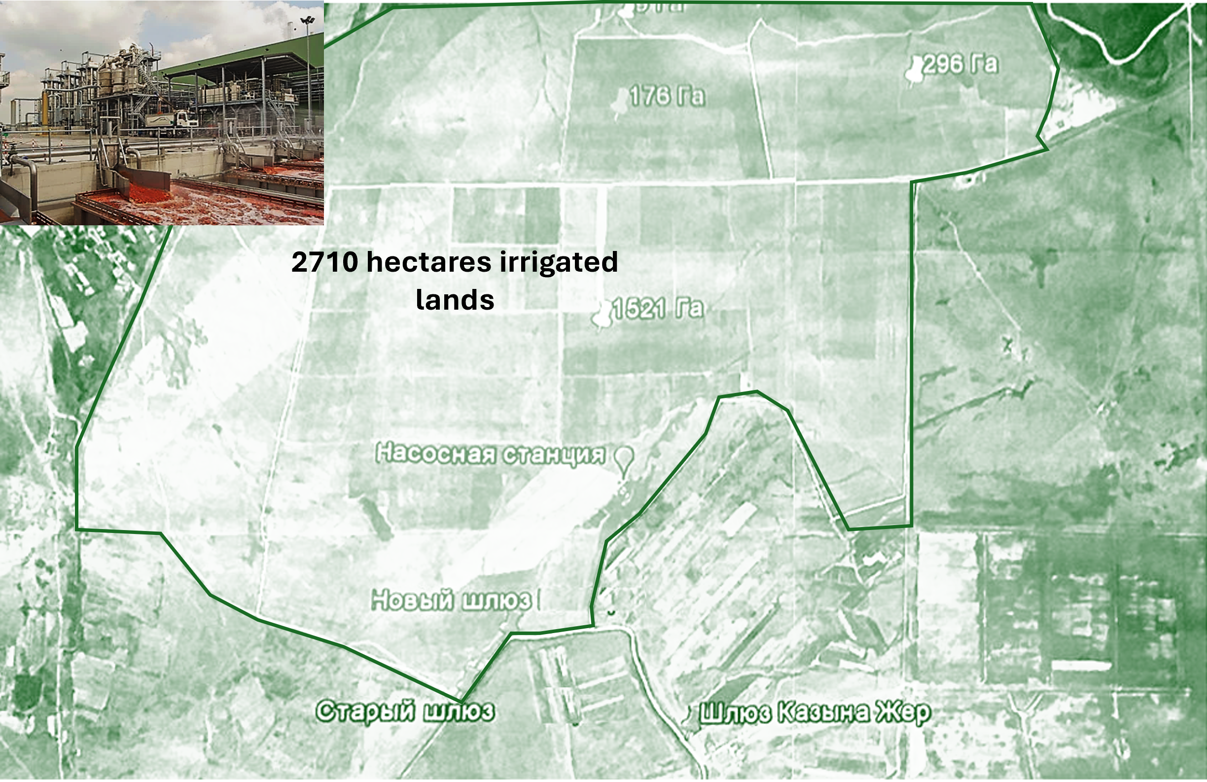 4. Сырьевая база — агродивизион открытого грунта 1500 гектаров сна капельном орошении с собственного выращивания томатов, интенсивный сад 100 га, контрактное фермерство на 1000 га с насосной станцией на 2500 га.